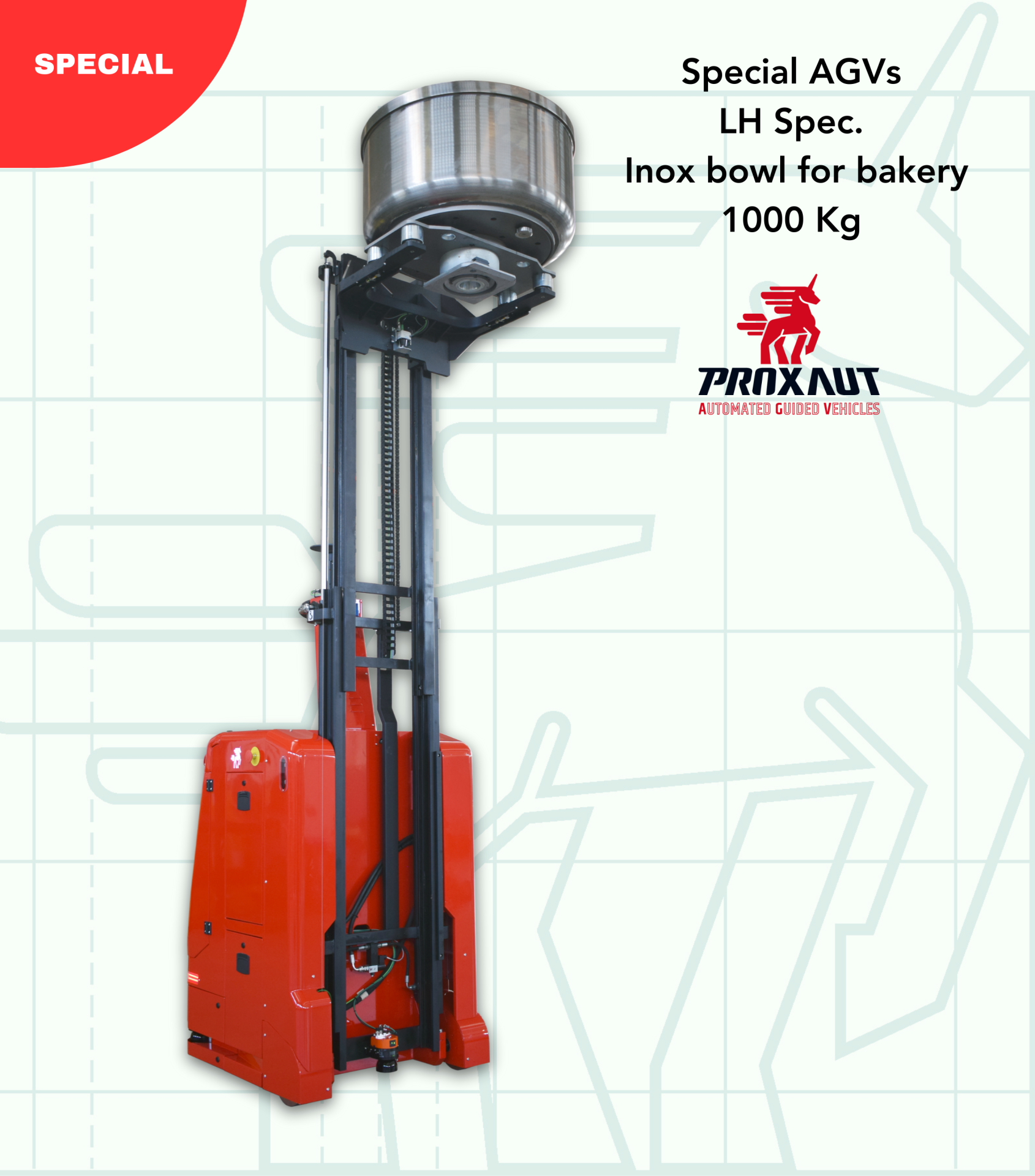 Certo! Grazie all’utilizzo di acciaio inox AISI 304 per i veicoli che si muovono nelle aree della produzione a contatto con gli alimenti, PROXAUT garantisce igiene e rispetto delle normative relative al settore alimentare.