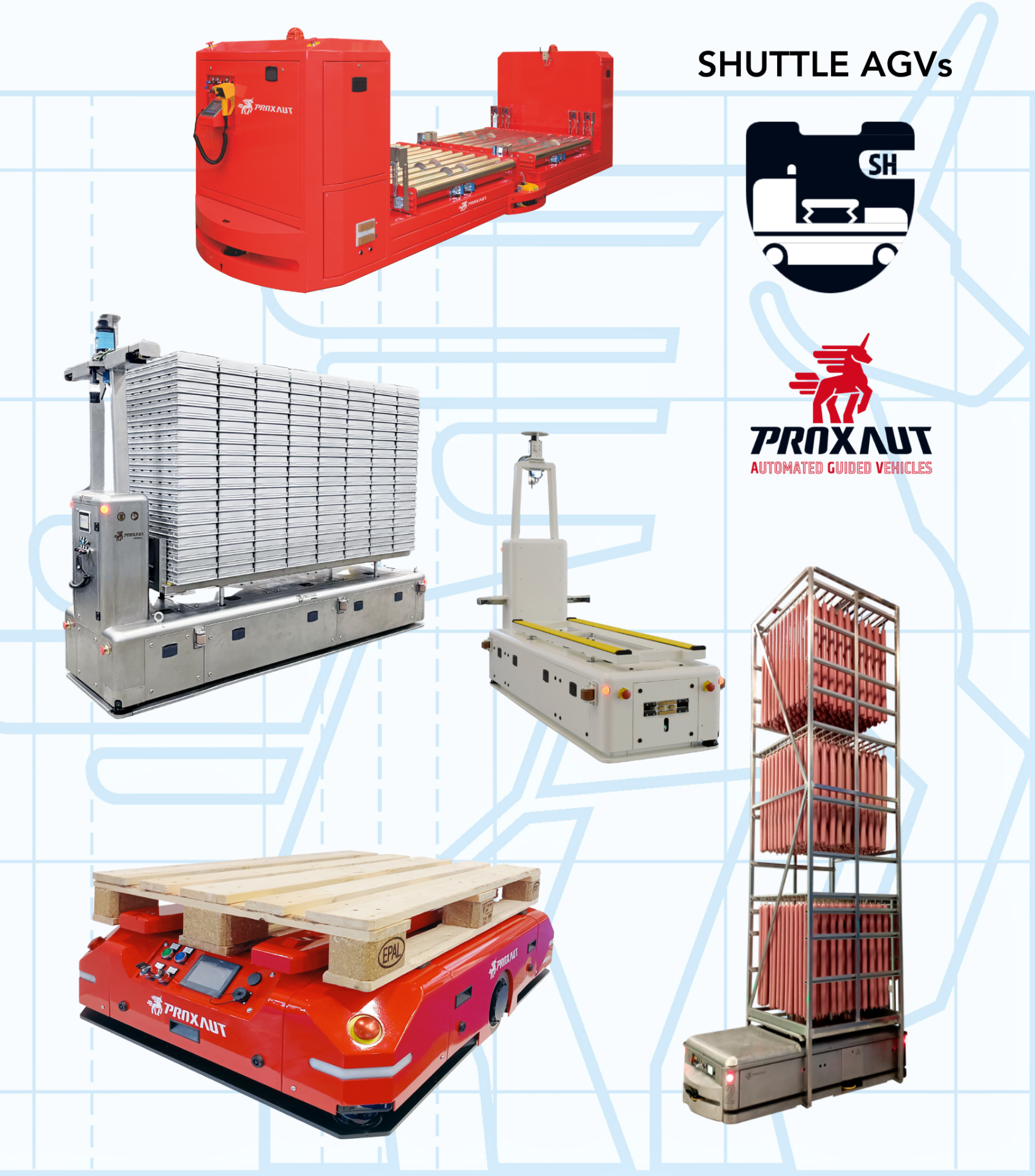 Les AGV de la série SHUTTLE de PROXAUT sont constitués de navettes (ou plateformes mobiles).