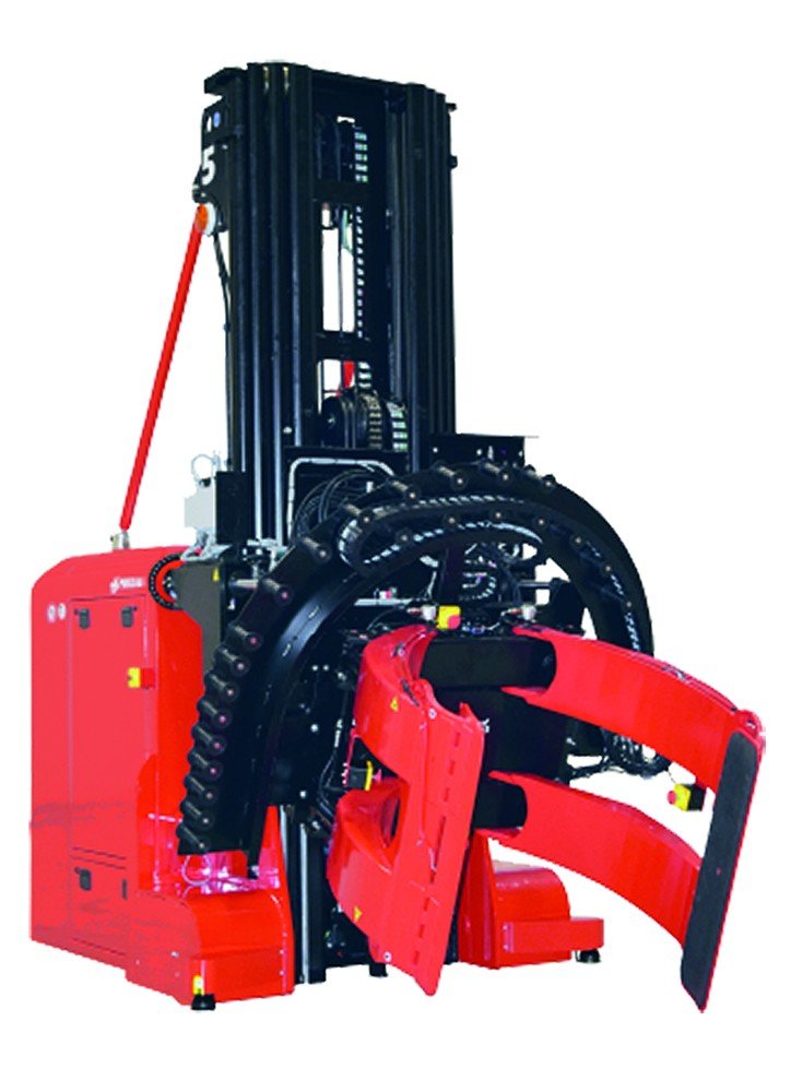 Pour charger facilement des bobines de grand diamètre, il est souvent nécessaire d'utiliser des AGV équipés de pinces de chargement spécialement conçues pour le poids et le type de bobine. Ces pinces assurent une prise parfaite, même avec des matériaux plastiques, préservant ainsi la qualité et l'impression des bobines.